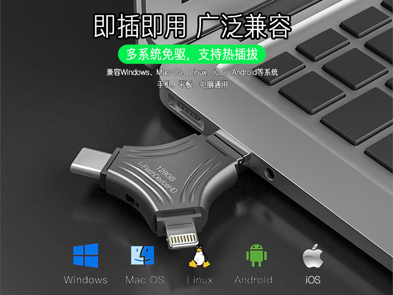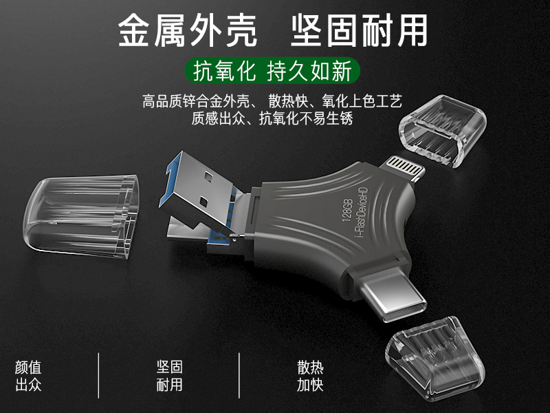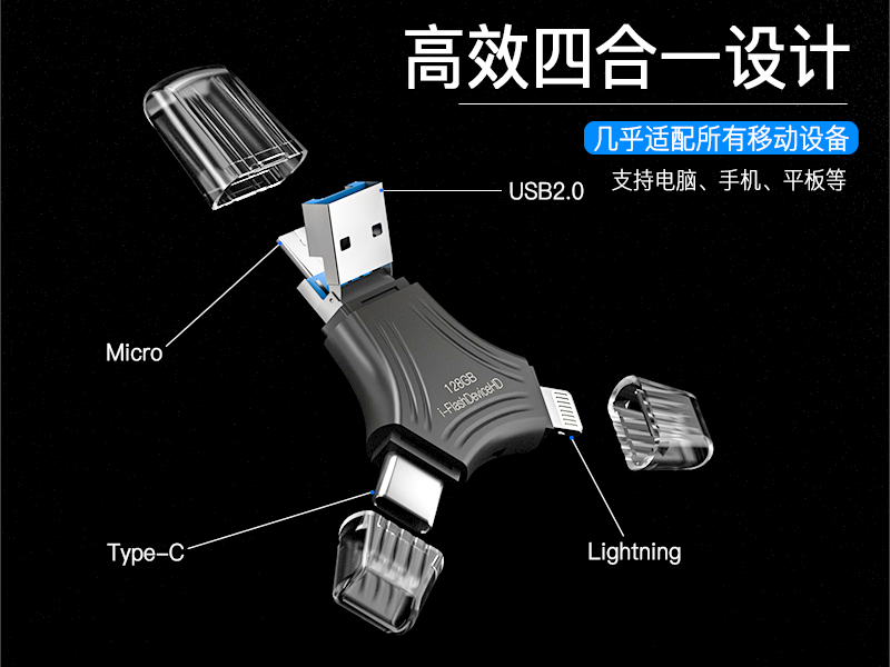 - Four in one USB flash drive: integrates USB, USB-C, Lightning, and Micro interfaces, making it easy to transfer data between multiple devices